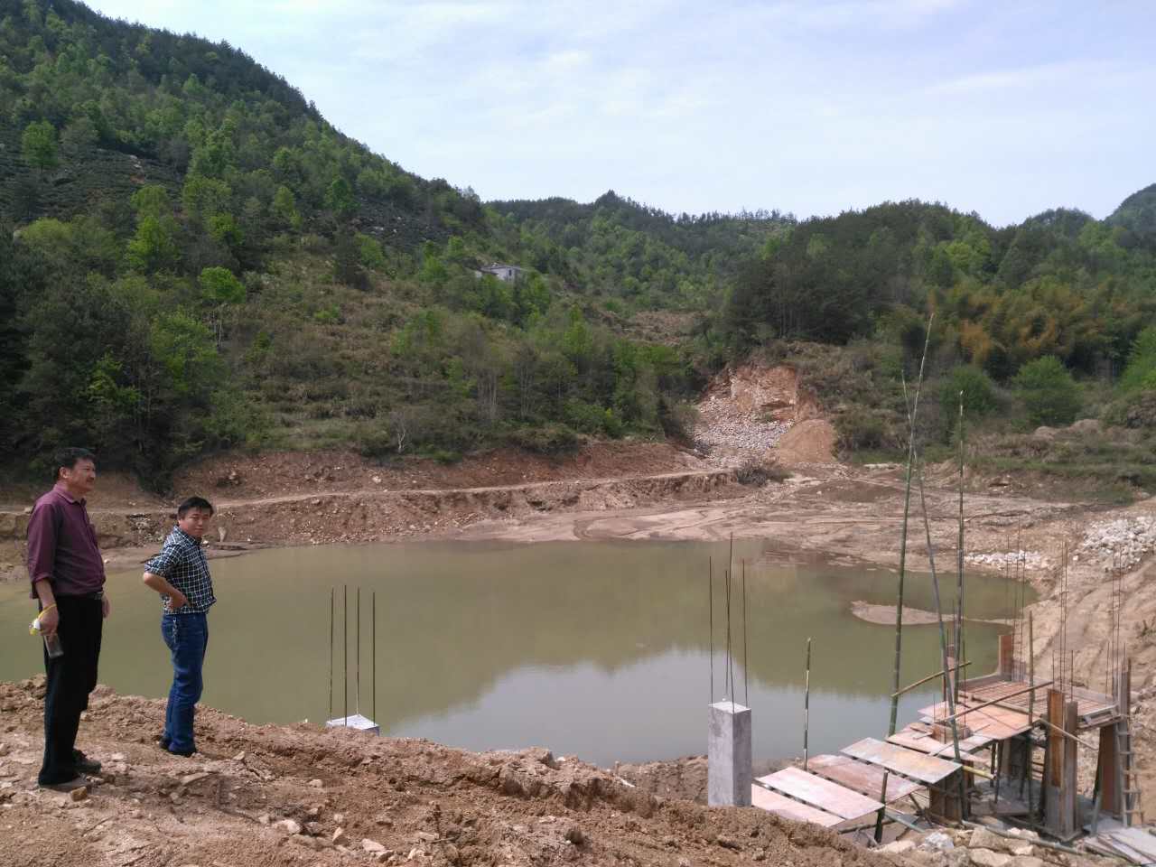 2017年4月17日上午,操人大与水利站陈站长一起督查叶榜村响水崖水库施工,要求施工方注重施工安全,严格按照县文件要求认真整改,工程质量与工程进度并抓,确保水库在汛期前保质保量完工。