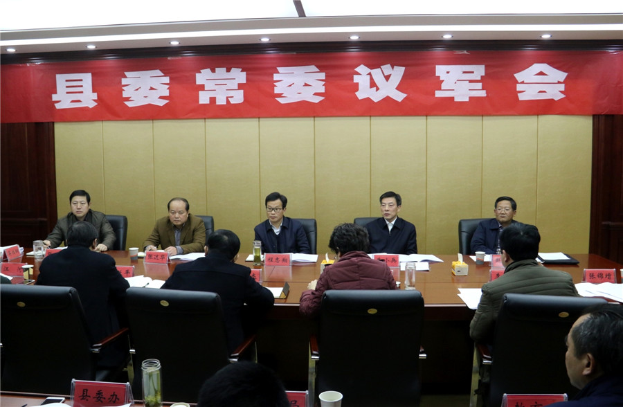 12月27日晚,县委书记、县人武部党委第一书记程志翔主持召开县委常委议军会。县长、县国动委主任朱小兵出席会议并讲话,县领导张达华、赵福南、张时民、张敏丽、赵俊杰、李加生、殷跃平、张锦增、江河出席会议。