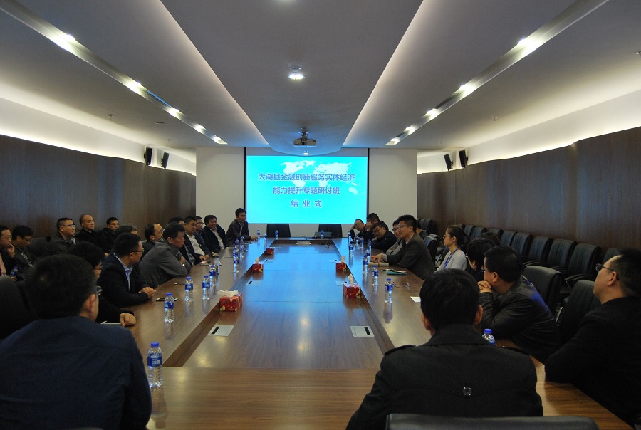 为学习贯彻党的十九大精神,进一步提升金融领域工作能力和企业经营管理者水平,11月14至18日,太湖县金融创新服务实体经济能力提升专题研讨班在上海期货交易所张江基地举办。上海期货交易所党办主任梅云波出席开班式并致辞,太湖县委副书记张时民出席开班式并讲话,县委常委、组织部长、统战部长方勇,县委常委、开发区党工委书记、管委会主任赵俊杰,县委常委、副县长孙爱德,县开发区管委会副主任陈维新,县直有关金融部门负责人,相关乡镇政府负责人,12家企业相关负责人共计36人参加培训。