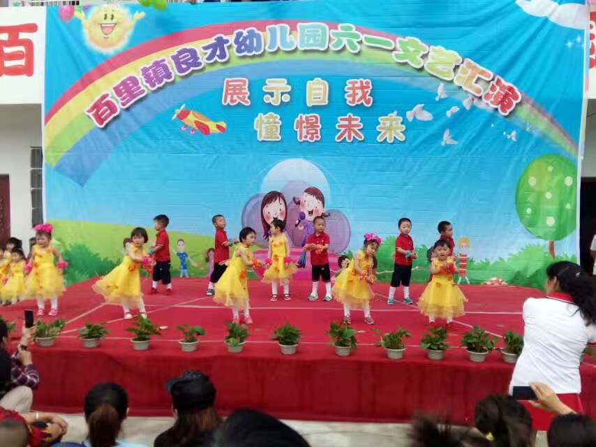 6月5日上午,百里镇叶榜村良才幼儿园举办“欢度六一,文艺汇演”活动。孩子们身着五颜六色的演出服着舞动着并不大灵活的小身子,在舞台上尽情的表演,蠢萌蠢萌的,逗的台下家长们捧腹大笑。